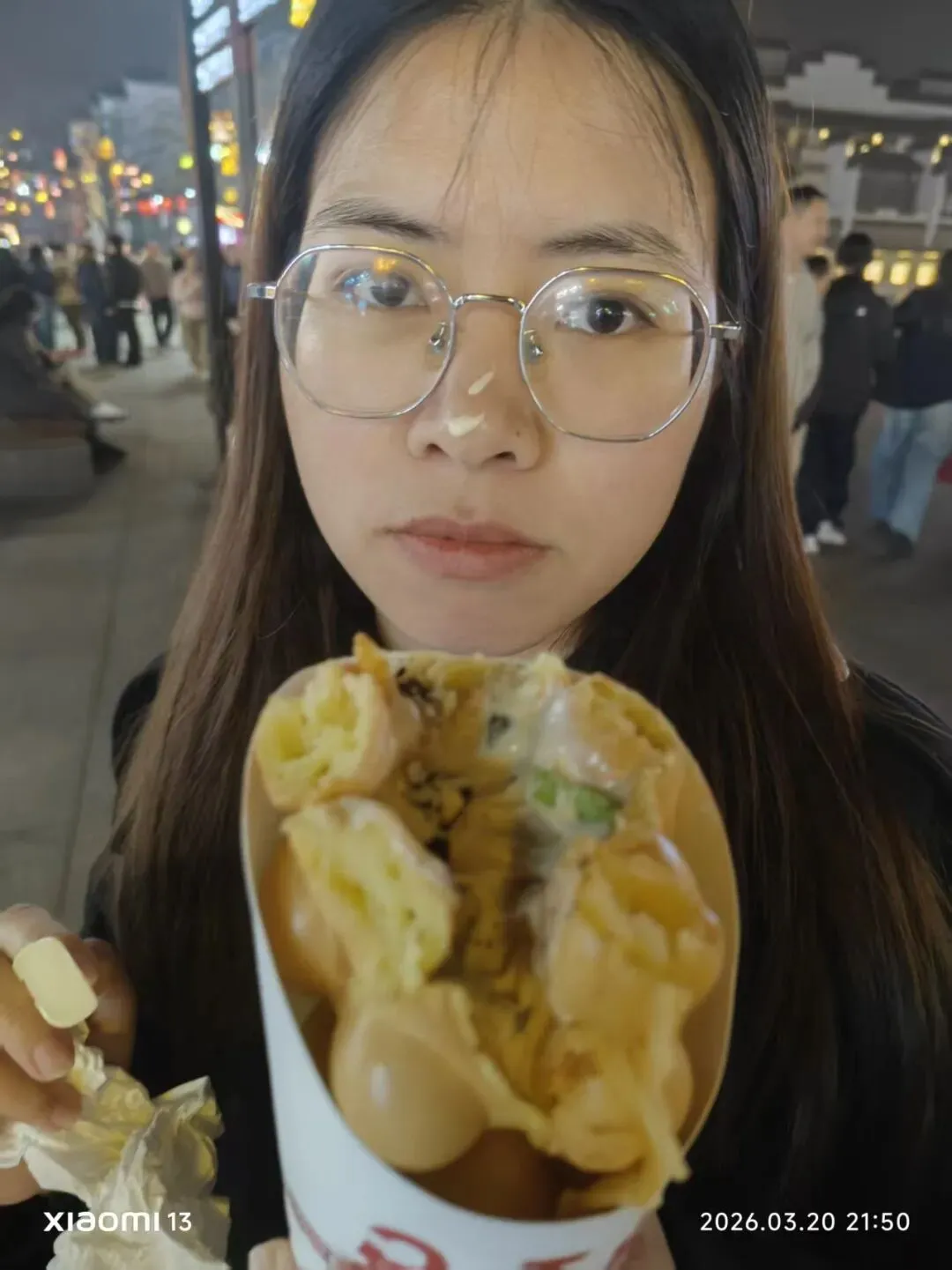 告别历史,我们去找一处历史于现实交织之处。踏门而出,路边小吃的映入眼帘。几根淀粉肠,一碗洋芋,仅做充饥而已,要论小吃,南京真得去贵州进修一下吧!