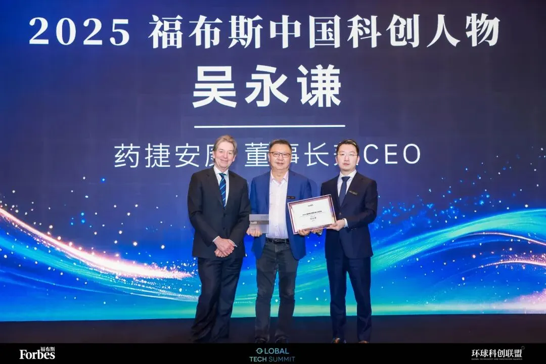 2025福布斯中国“科创人物”榜单汇聚了各领域顶尖科创力量。与吴永谦博士一同入选的,还有阿里巴巴集团主席蔡崇信与CEO吴泳铭、寒武纪创始人陈天石、小鹏汽车董事长何小鹏、字节跳动CEO梁汝波等业界标杆。他们的共同之处,在于以核心技术突破驱动产业变革——这也正是药捷安康在生物医药赛道持续发力的方向。