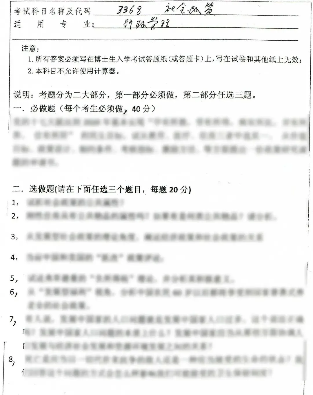 南京大学社会政策考博真题