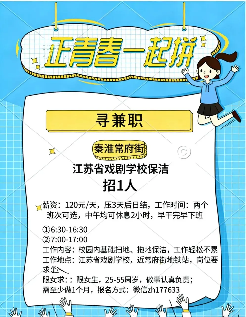南京最新兼职更新!餐饮日结/发单协助/保洁/安保全覆盖,包吃包住无套路