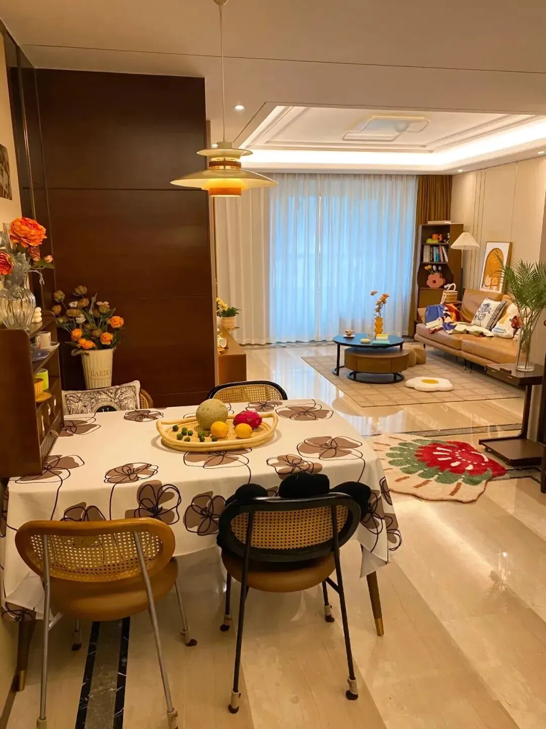 再往里走,餐厅和客厅连成一体,空间宽敞,但没有一丝空旷感。