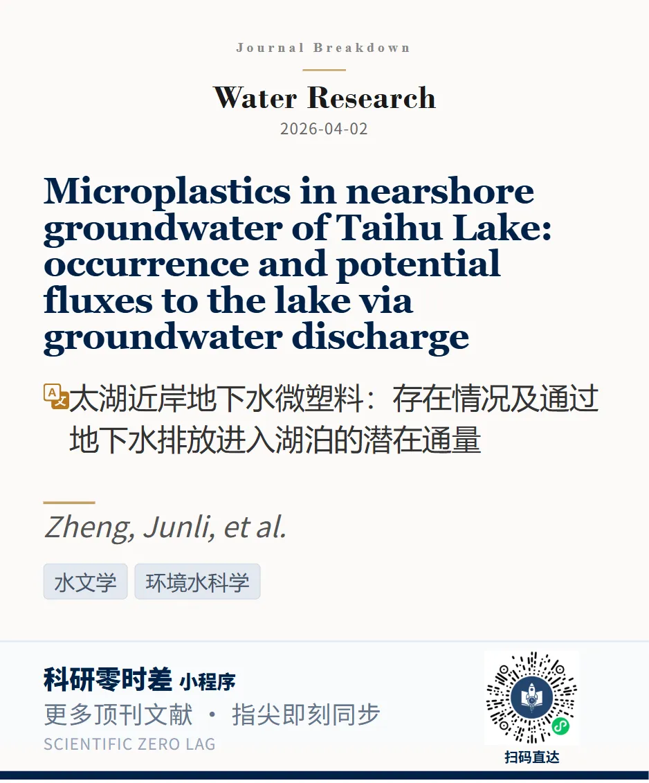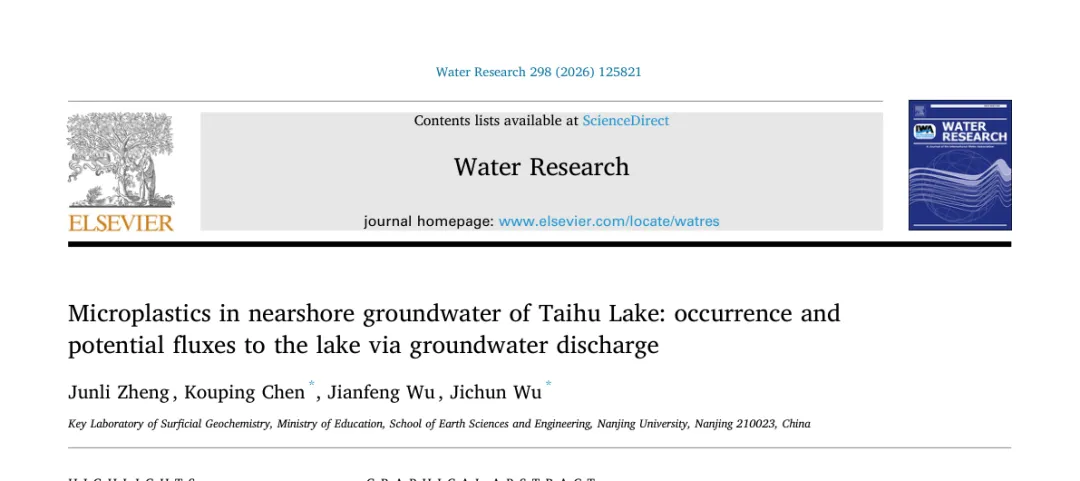 我们通过小程序科研零时差追踪到: Water Research近期发表题为“Microplastics in nearshore groundwater of Taihu Lake: occurrence and potential fluxes to the lake via groundwater discharge”的文章。第一单位为南京大学。