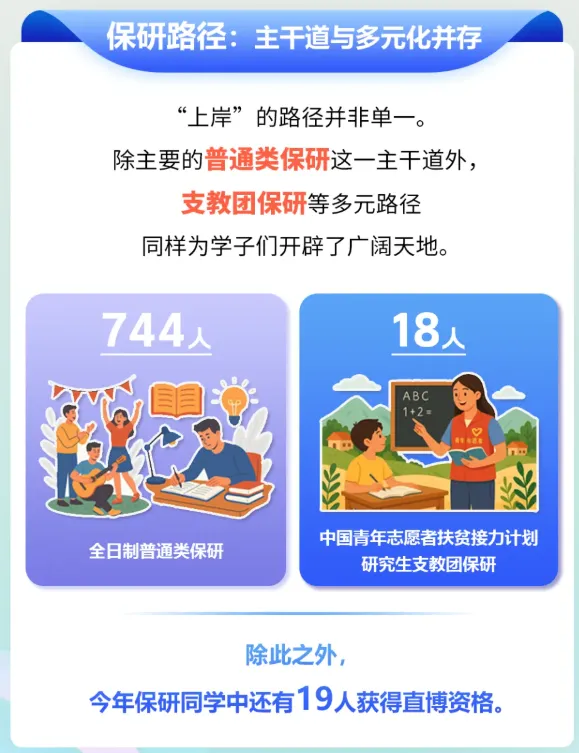 它提供了一套清晰可见的数据:42%的深造率,10.89%且持续增长的保研率,99.2%的双一流高校流向,70%的实验班保研保障。