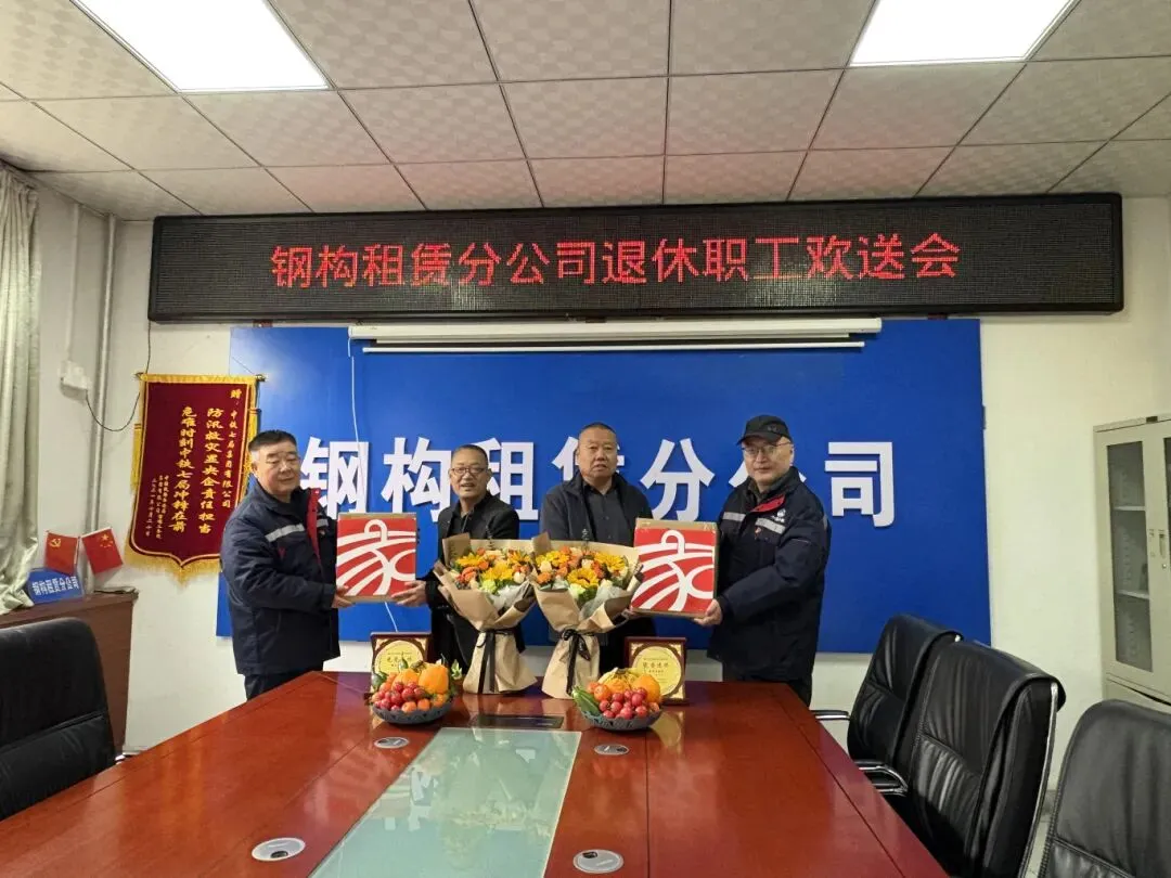 3月24日,钢构租赁分公司举行退休职工欢送会,热烈欢送张连生、赵彦伟两位老同志光荣退休,传递公司对退休职工的关怀,凝聚了团队力量。(来源:王娟)
