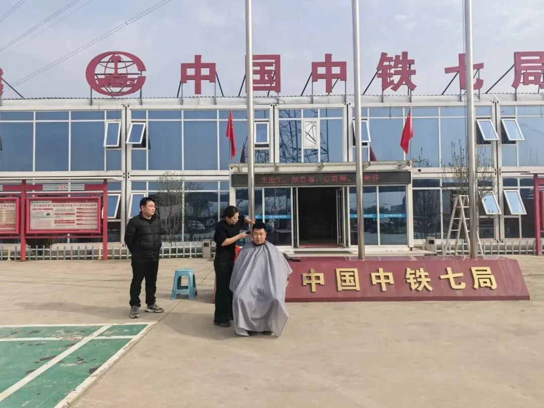 3月20日,平漯周高铁项目精心组织爱心义剪活动,为全体职民工免费修剪发型,以民俗温情传递关怀,以崭新风貌奔赴建设新征程。(来源:罗鹏娟)