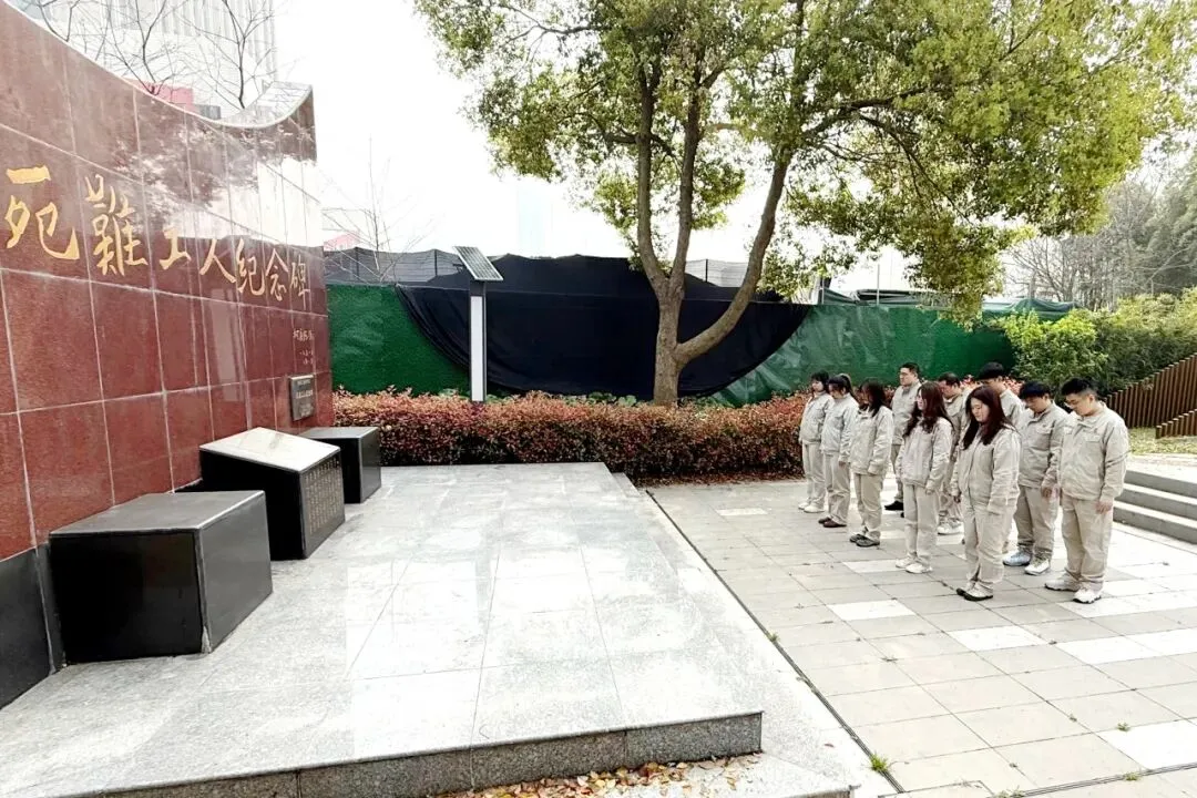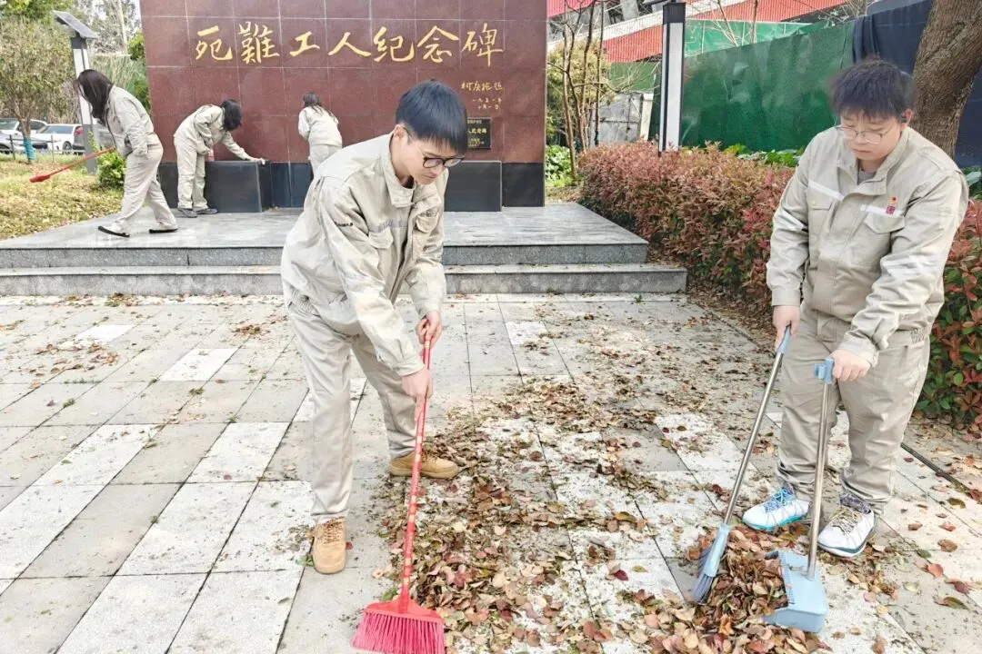 上午9时30分,团员青年们首先来到死难工人纪念碑前。大家怀着崇敬与沉痛的心情,轻轻拂去纪念碑上的灰尘,仔细清扫四周落叶。随后,青年代表敬献鲜花,全体人员肃立默哀,向在南京大屠杀期间英勇牺牲的电厂工人致以最深切的悼念。