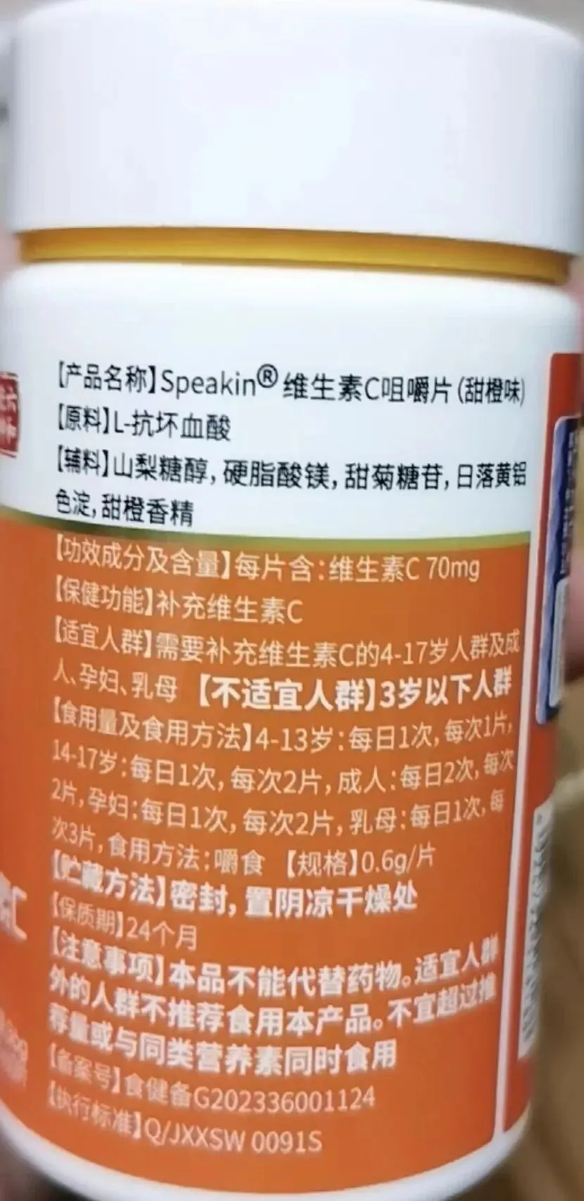 [产品名称]Speakin维生素C咀嚼片(甜橙味)