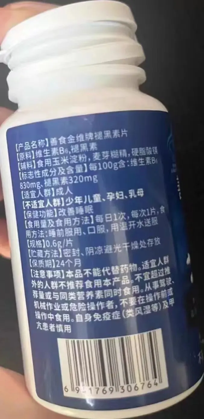 [标志性成分及含量]每100g含:维生素B6830mg、褪黑素320mg