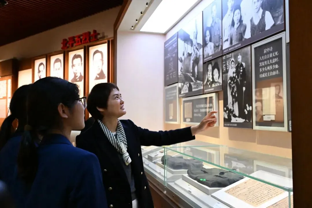 在讲解员的细致带领下,同学们放慢脚步、驻足凝视,认真聆听每一位英烈背后的故事——有年轻的革命者为了理想信念挺身而出,面对敌人的严刑拷打始终坚贞不屈;有投身救国事业的青年志士,放弃优渥生活,义无反顾奔赴革命前线,用青春和热血践行使命担当。从英烈们用过的笔记本、简陋的生活用品,到记载革命历程的文献资料、锈迹斑斑的战斗武器,每一件展品都承载着一段刻骨铭心的历史,每一个细节都传递着英烈们的忠诚与无畏。参观过程中,同学们屏气凝神,有的轻轻凝视展品,若有所思;有的低声交流感悟,抒发敬意;还有的悄悄记录下英烈事迹,将这份感动与崇敬铭记于心。