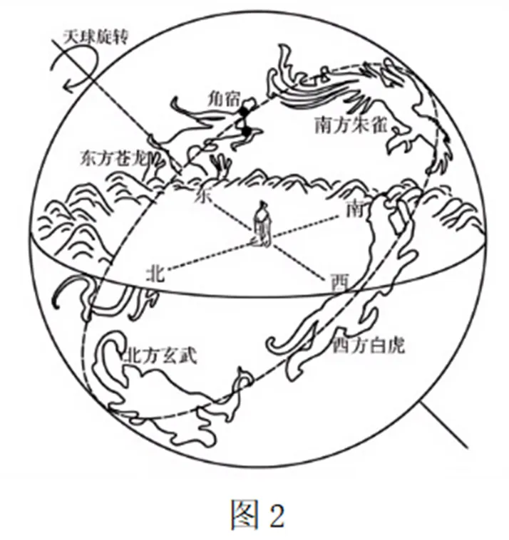 古人将黄道附近星象划分为二十八宿,分属苍龙、朱雀、白虎、玄武等“四象”,角宿为苍龙首宿(图2)。每年农历二月初二,日落后一段时间,当角宿从地平线升起时,即为“龙抬头”。2026年“龙抬头”为公历3月20日。据此完成3~4题。