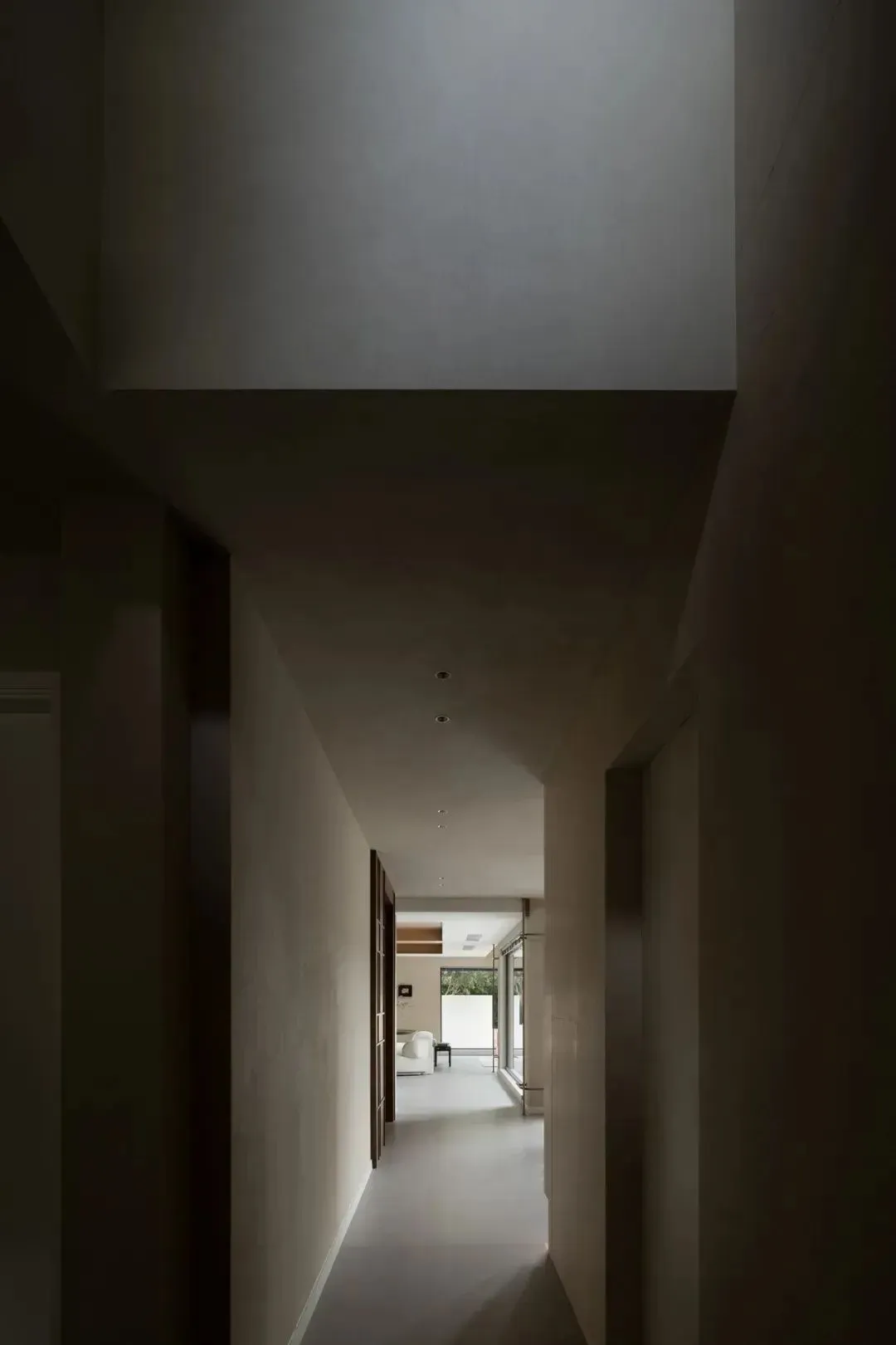 走廊空间以极简方式呈现,结构干净明确。自然光的引入与材料的节制使用,让行走过程具备清晰的节奏感,光线在墙面与地面之间变化,带来稳定而内敛的情绪体验。