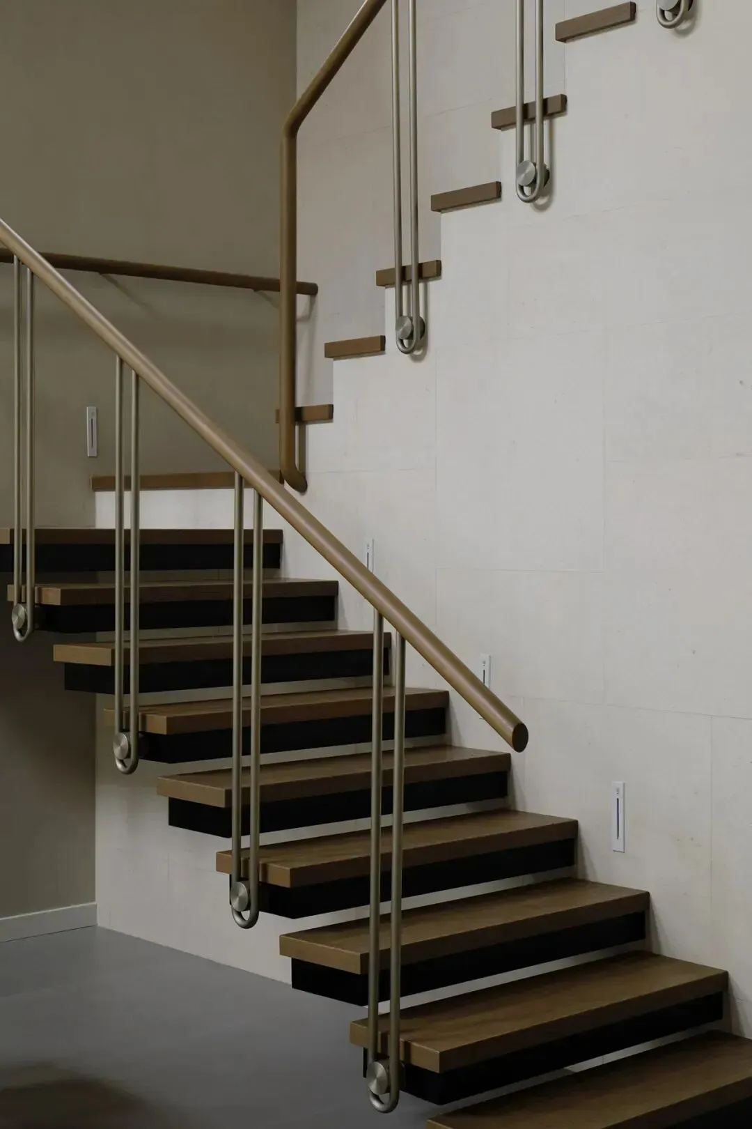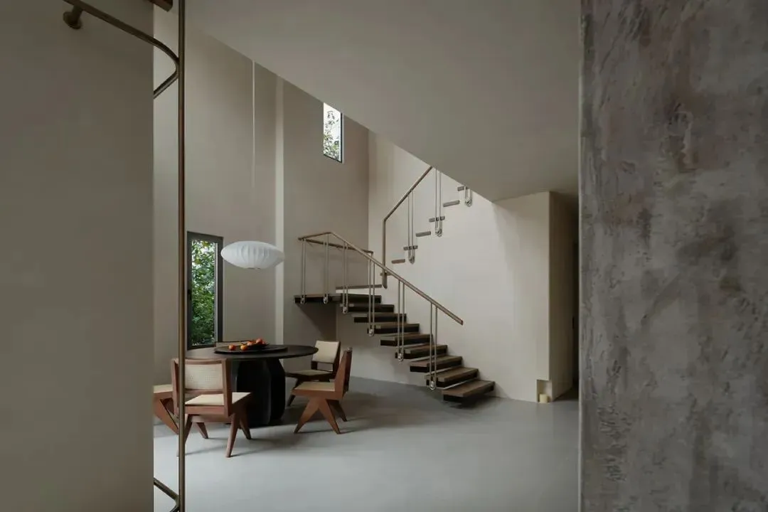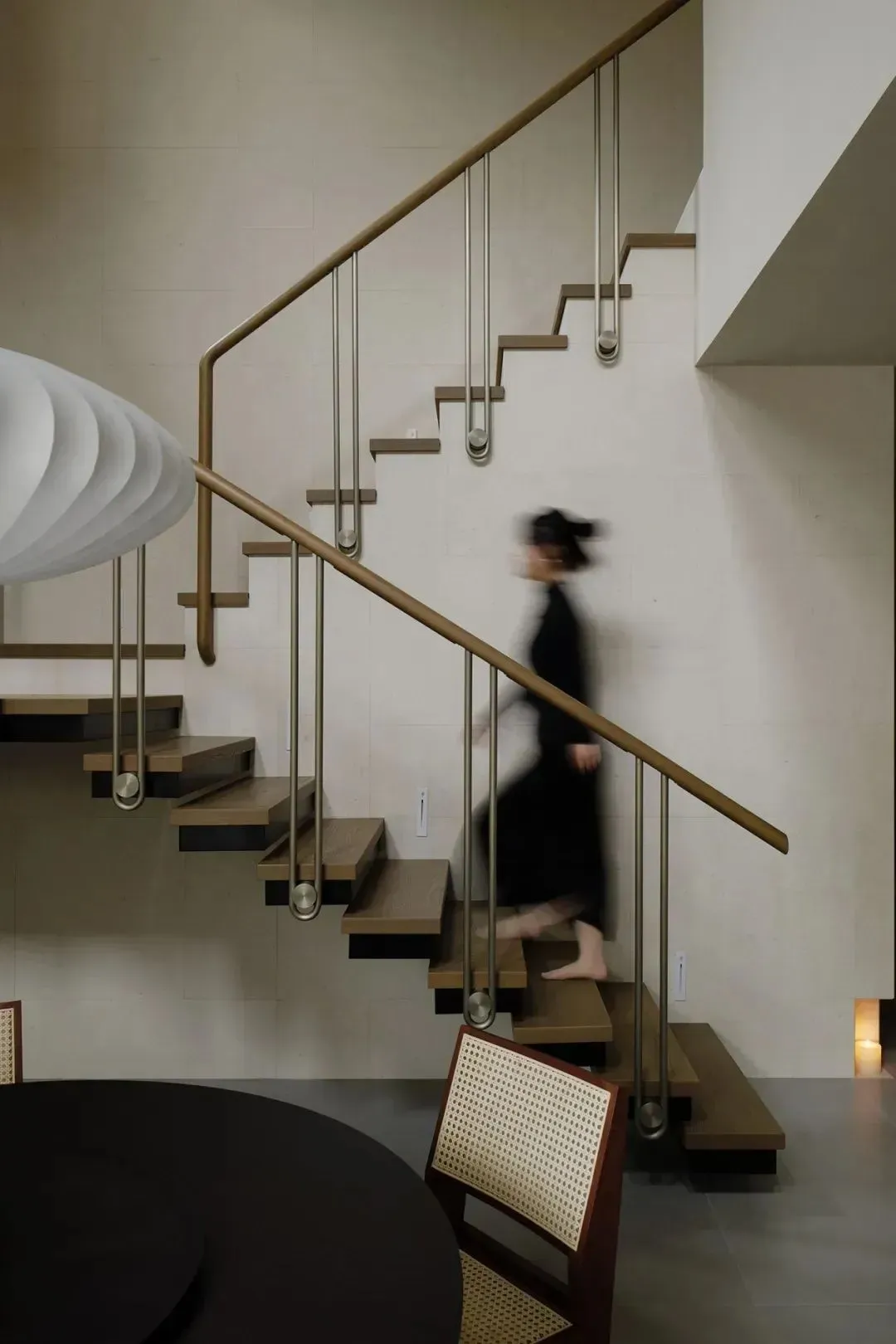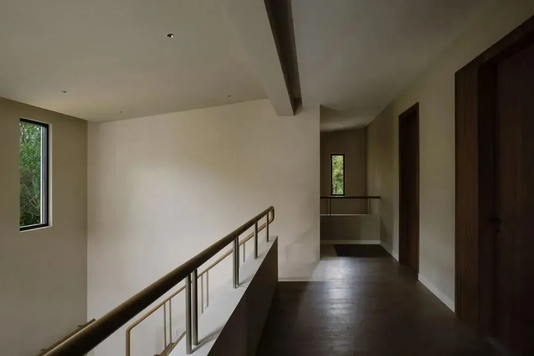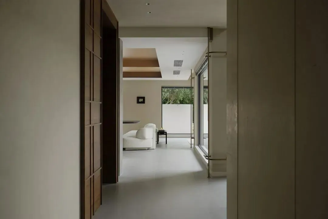 The corridor space is presented in a minimalist manner, with a clean and clear structure. The introduction of natural light and the controlled use of materials give the walking process a clear sense of rhythm. The light changes between the wall and the ground, bringing a stable and restrained emotional experience.