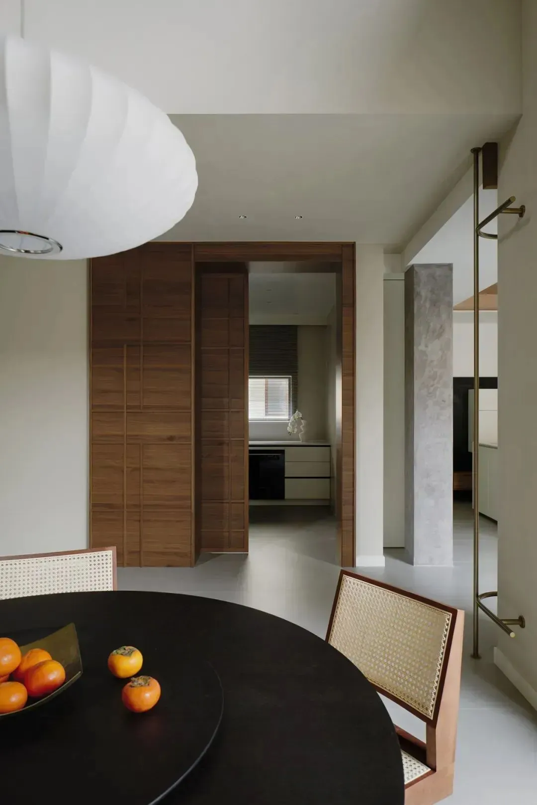 餐桌选择大尺寸圆形实木款式,材质本身的厚重感为餐厅奠定稳定基调。圆形布局强化了围合关系,让交流成为使用过程中的自然结果,也回应了家庭聚集时的情感需求。