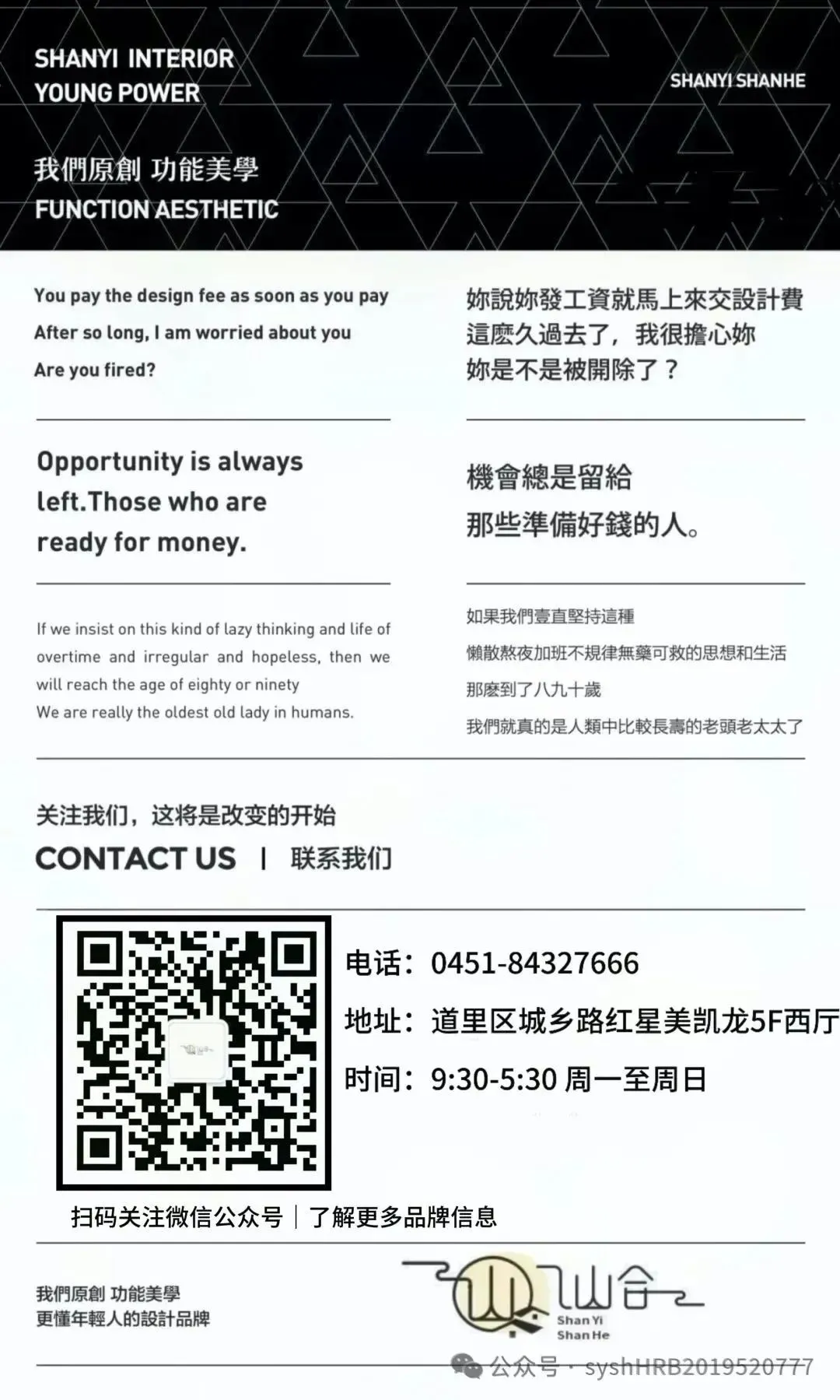 Heilongjiang Shanyi Shanhe Decoration Engineering Co., Ltd. is a high-end brand in Heilongjiang that focuses on providing integrated design and construction services for home decoration, home furnishings, and commercial projects for elite people. We have taken the lead in introducing industry-leading service standards such as "private services" and "six unifications"With a nationwide service center and a service network covering the entire country, we can provide high-end home and public decoration services to nearly a hundred cities; Adhering to the business philosophy of "integrity-based, service-oriented", with a huge resource layout in the national market, we aim to create a benchmark brand for the integration of home decoration, home furnishing, and commercial projects nationwide. We advocate for an elite lifestyle and provide professional home decoration, commercial, and home furnishing services for high-end users, focusing on details, people-oriented, and quality-orientedProfessional designers and construction teams provide design services to high-end families and businesses, integrating art into exquisite living; 30 gold medal foremen, each with over 3000 experience in decoration projects, have created a large number of quality projects under the guidance of the "Ten Great Craftsmanship and Six Unified Standards", winning excellent customer reputation for Shanyi Shanhe. The service system shares the national market storefront system, supply chain system, procurement system, and logistics system. We will provide users with high-quality products and services, from design to home decoration, from home furnishings to daily necessities procurement, providing users with a one-stop elite lifestyle