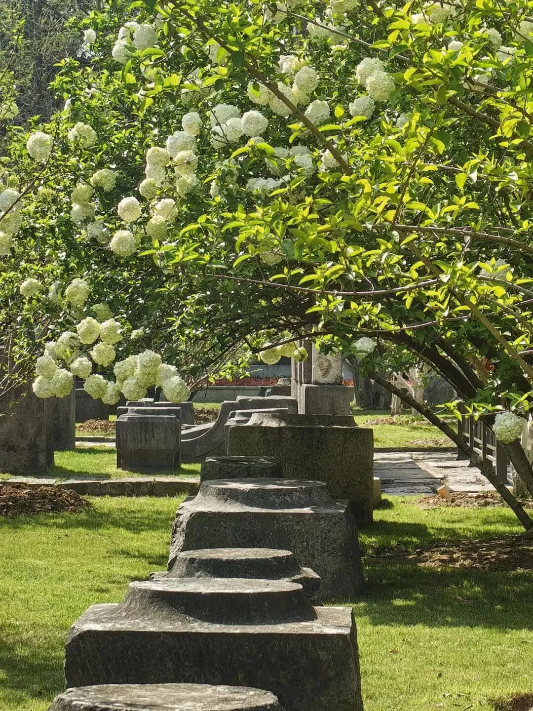 可以低机位拍木绣球和遗迹,也可以远景拍出绣球瀑布的感觉。公园是遗址,阴天和清晨更能拍出岁月的清冷感🍃。花基本都在围栏里面,拍人像和细节都会有些限制,但不要越过围栏拍哦!