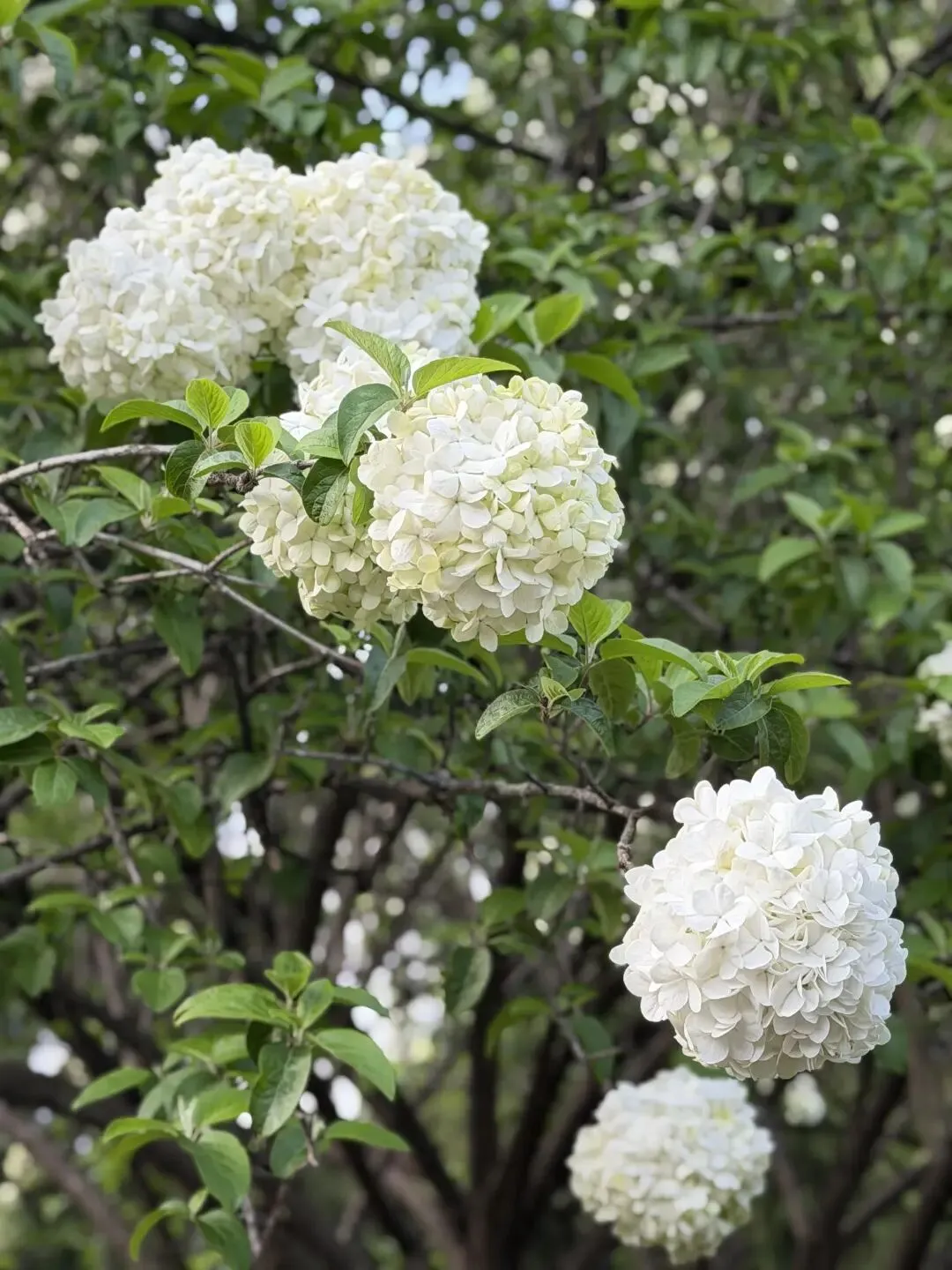 🌿午朝门的春天,是六百年宫墙遇上满树白雪。公园大门口就能看见花开了,今年又新栽了八九株,青翠碧绿的木绣球缠绕在古城墙间,花朵开得也比较较低,挺好出片的。
