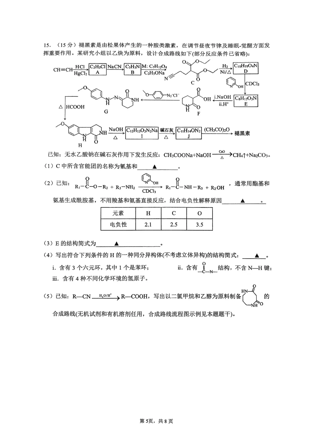 江苏南京二十九中学2026届下学期高三3月阶段测化学试卷与答案,下载方式如下: