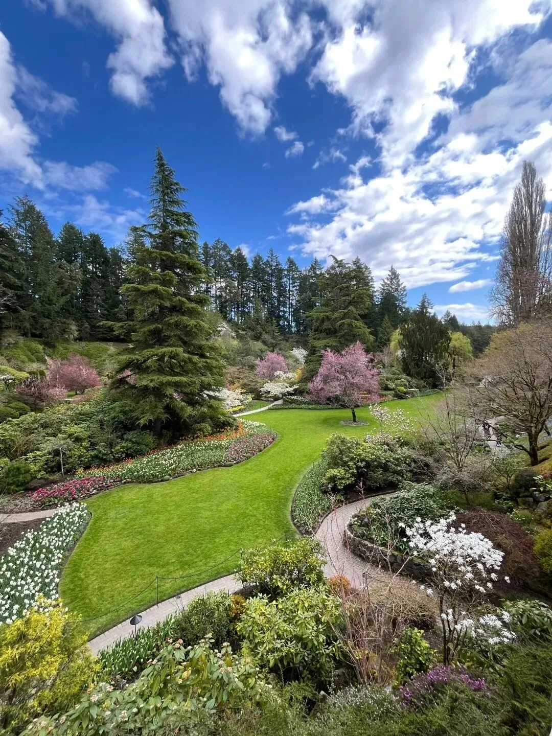 【布查特花园*】(约 120 分钟):这是一座从废弃采石场中涅槃重生的“仙境”。这座超过百年历史的花园,犹如一个露天的艺术殿堂,由下沉花园、日本园、玫瑰园等多个主题区域组成,四季更迭,花事不绝。漫步其中,仿佛穿梭于一幅幅流动的油画,从意大利式庭院的规整到日式庭院的幽静,每一步都是视觉的盛宴。而游览的精髓之一,便是在古色古香的园中餐厅享用一次正统的【英式下午茶*】。坐在优雅的室内或阳光和煦的露天座,品尝着精致的三层点心,佐以一壶香醇红茶。眼前是窗外的烂漫花海,口中是经典英伦风味,这一刻,味蕾与心灵同时沉醉在大自然与人文共同谱写的诗意之中。