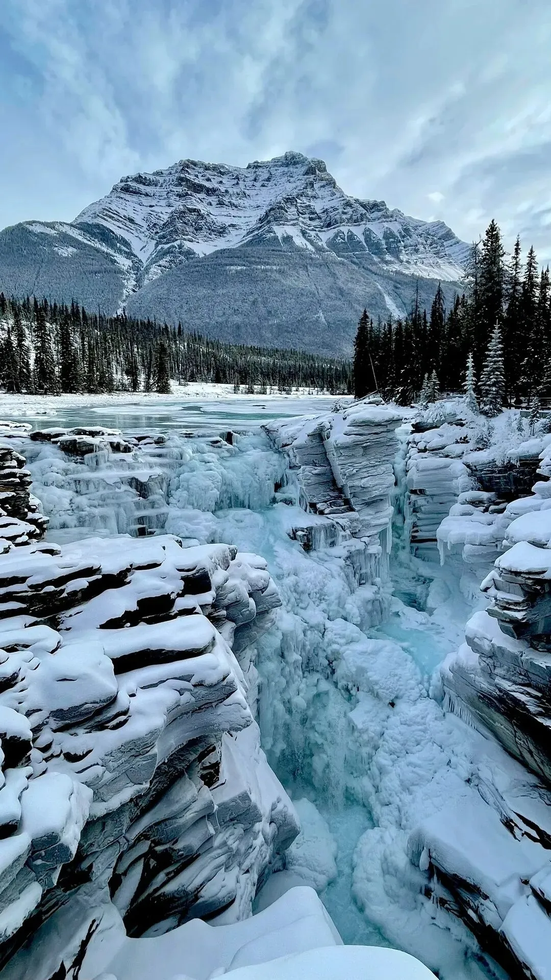 【库特尼国家公园*】(约 45 分钟):前往大理石峡谷 (Marble Canyon),进行轻度徒步。峡谷中有多座木桥,步道呈“之”字形跨越蜿蜒溪流,两侧高耸的石灰岩峡谷与冰瀑构成壮丽景观,冬季的瀑布更是晶莹剔透。