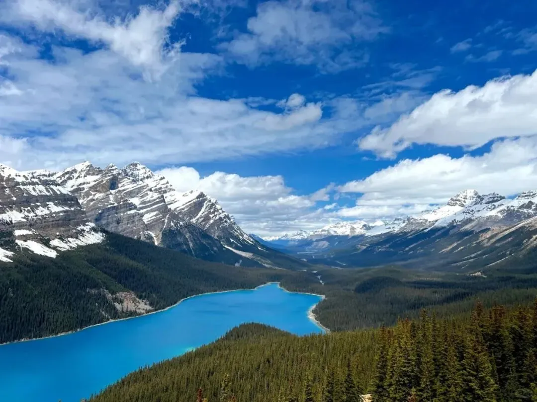 【班夫国家公园*】(约 120 分钟):坐落于加拿大落基山脉心脏地带,是您一生中不容错过的荒野仙境。这里拥有翡翠般的湖泊、雄伟的冰川和直插云霄的雪峰,每一处风景都如同精心绘制的巨幅画卷。