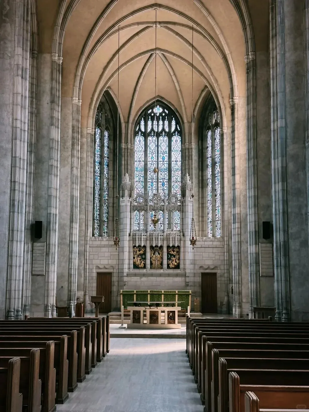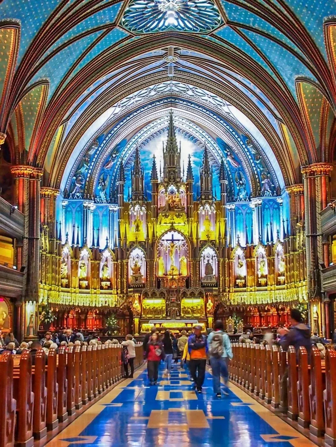 【蒙特利尔旧城区】(约 60 分钟)建于 1829 年的北美最大教堂【诺特丹圣母大教堂】(外观),号称“小巴黎圣母院”的别具风格的哥特式天主教堂,教堂的正面矗立着两座高耸雄伟的塔楼,外形像极了哥特式风格的城堡。