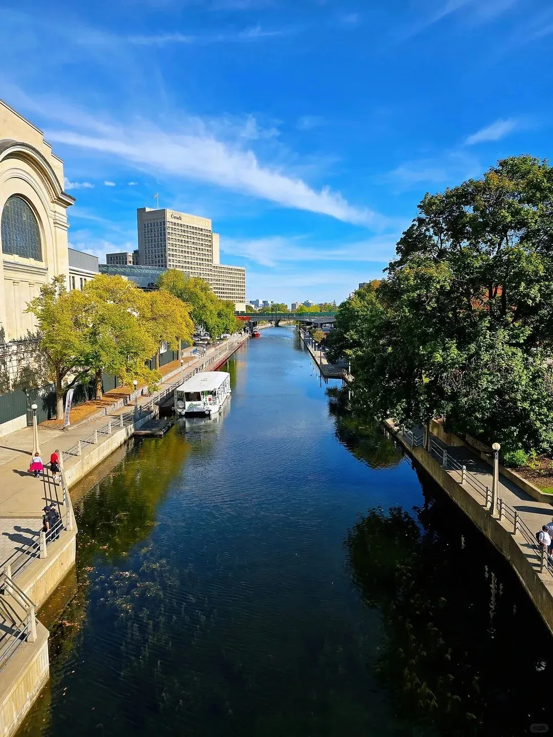 官邸都集结在这里,依山傍水,美丽而宁静,建筑各有特色。途径【里多运河】,它是安大略省的联合国教科文组织世界遗产地,全长 202 公里,是 19 世纪工程技术的奇迹之一。