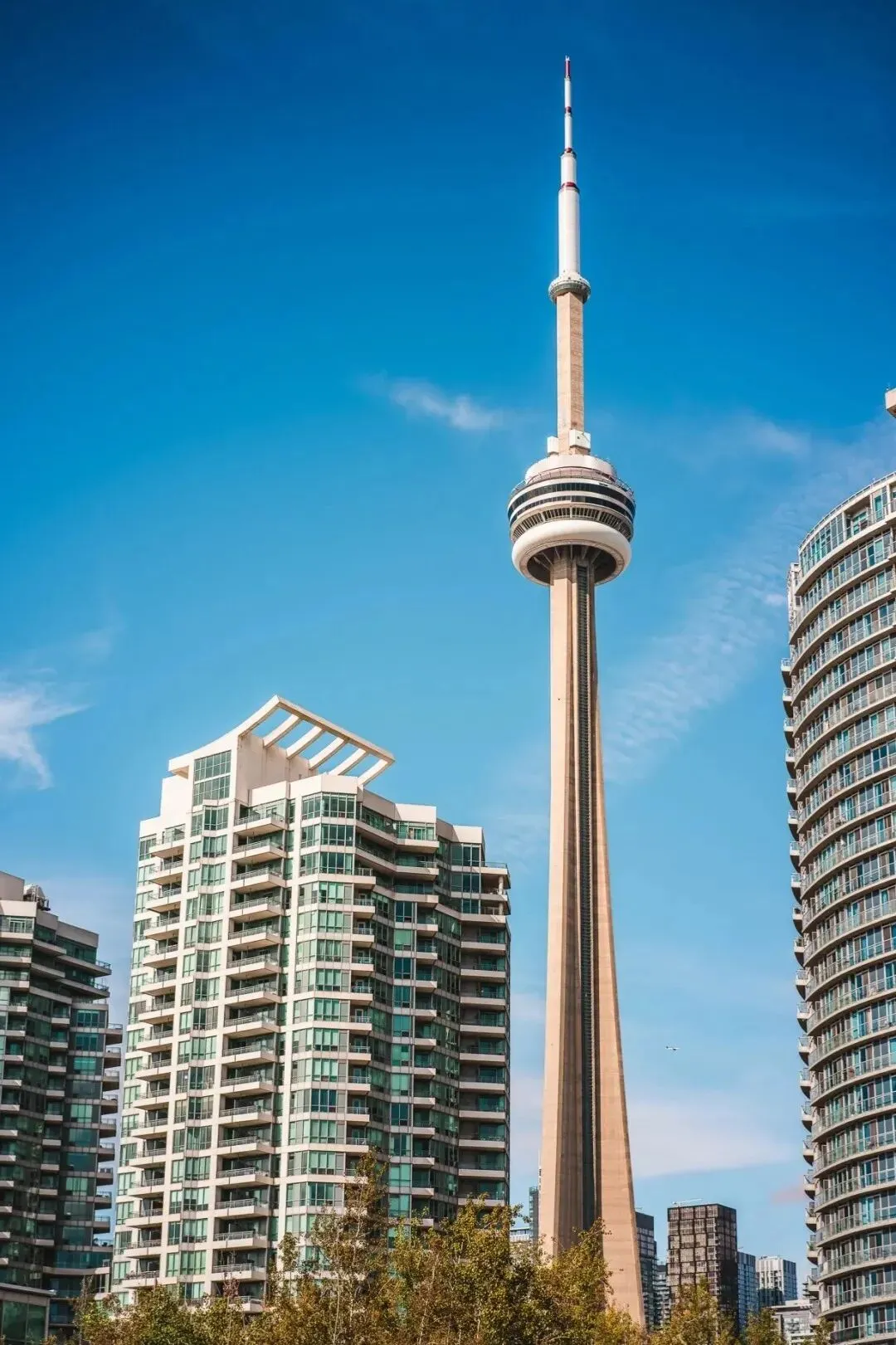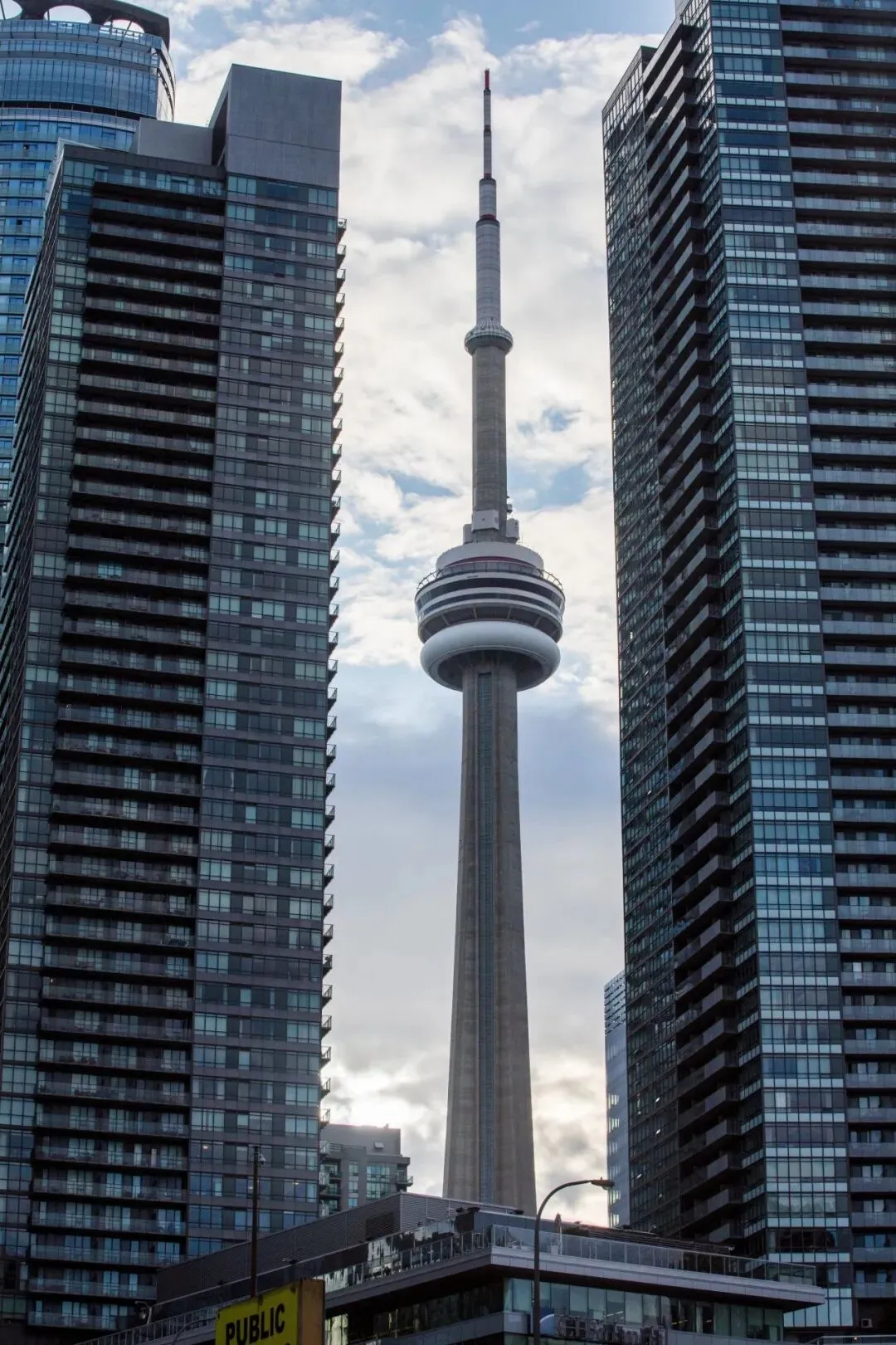 早餐后【多伦多市区游览】(约 120 分钟):外观安大略湖畔的【CN 塔】,加拿大国家电视塔,塔高 553.3 米(146 层),是加拿大的著名象征,国家十大景观之一,也是多伦多城市风景线的重要标志。紧靠 CN 塔的【天虹体育馆】(外观),这里是多伦多各大型体育活动的举办场所,同时也是顶蓬全自动开关巨蛋体的全天候室内体育馆。