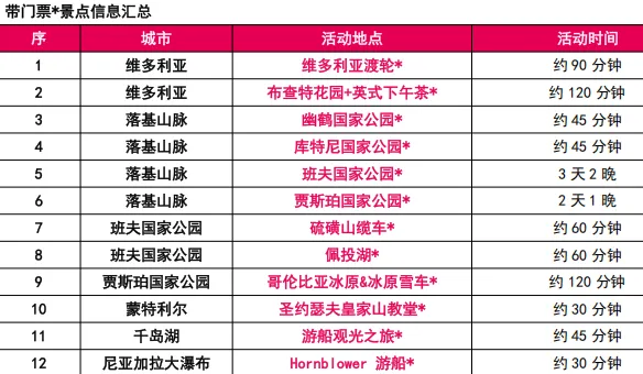 2、落基山如遇天气等不可抗力的原因,考虑到游客的安全,有可能关闭部分景点,如遇景点