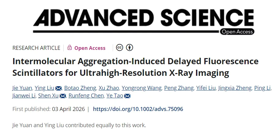 南京邮电大学,Advanced Science,用于超高分辨率X射线成像的分子间聚集诱导延迟荧光闪烁体