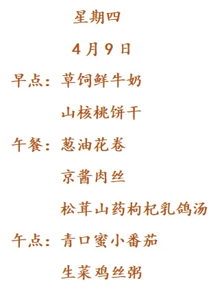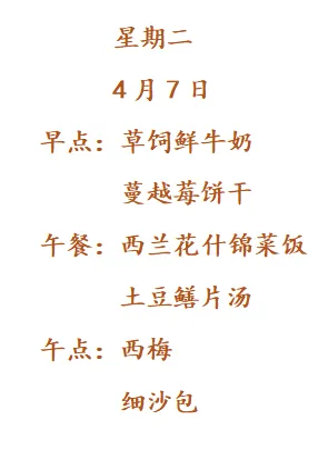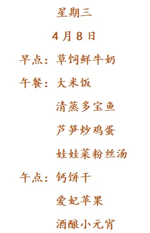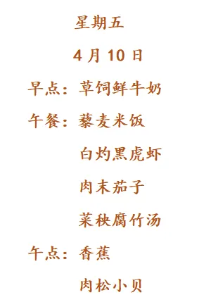 南京市紫杨佳园幼儿园第六周食谱2026.4.7-4.10