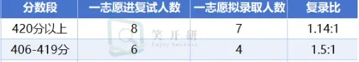 ②一志愿进复试最高分449分,最低分406分;拟录取最高分449分,最低分406分