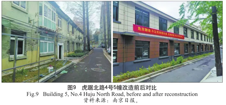 虎踞北路4号5幢:南京首例产权人自筹资金危房翻建,遵循原址、原高度、原面积,改造为框架结构,解决潮湿、厨卫缺失问题;推动南京出台危房消险政策,C/D级危房分别获40%/60%财政补助。