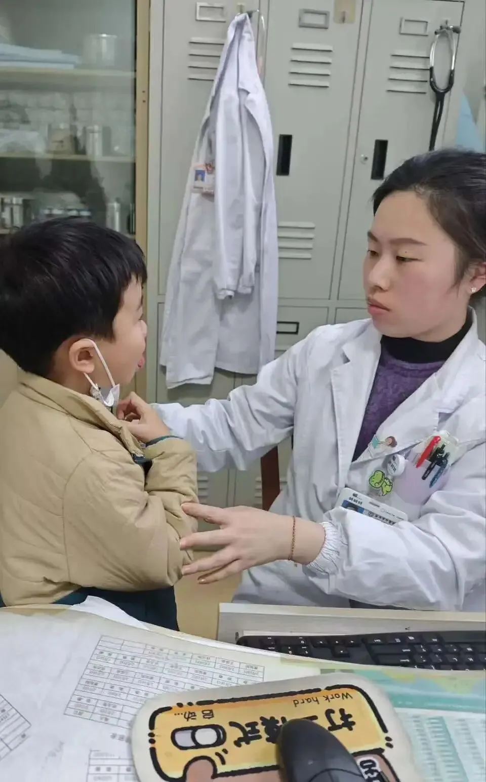 活动第一天一大早,真州路院区儿科诊室走进一位神色焦虑的妈妈,身后躲着瘦小的浩浩。