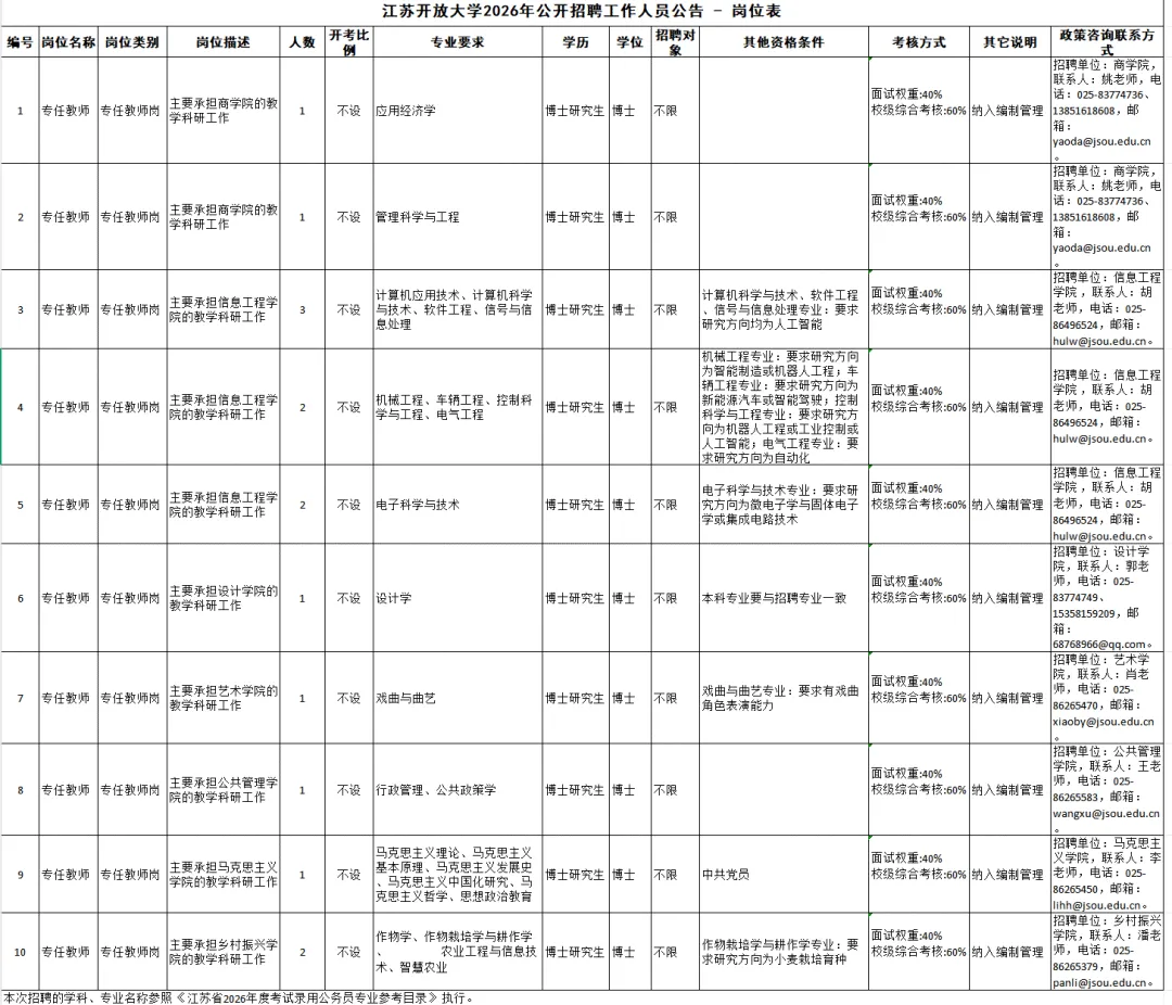 附件:江苏开放大学2026年公开招聘工作人员公告-岗位表.xlsx