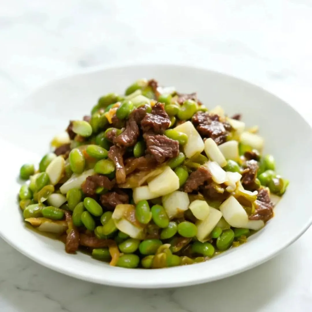 茭白毛豆米炒牛柳菜秧口蘑汤