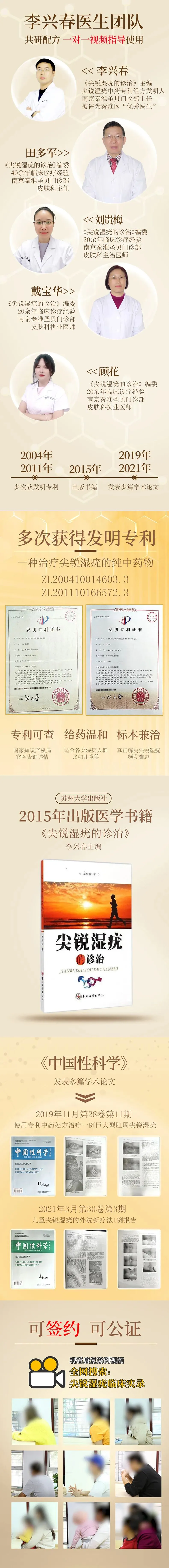 中医认识尖锐湿疣系列讲座:第二讲 阴虚湿热型病毒疣 早在2004年,我国已有针对尖锐湿疣的中医治疗组方,并获得了发明专利。该专利组方在临床应用7年之后,再次优化配伍,使得其治疗的效果更进一步,并于2011年再次获得发明专利,解决了巨大型、顽固性、腔道型等多种疑难尖锐湿疣患者的复发问题。并且,该中医组方采用的方式更加温和,仅以中药汤剂的“口服+泡洗”进行给药,无论是初发还是复发患者,都十分青睐,接受度非常高。更重要的是,该方法是目前敢于给广大患者承诺的治疗方案,接诊后确保去根不复发。