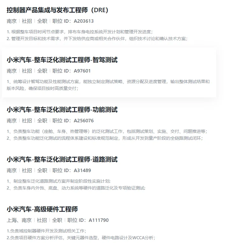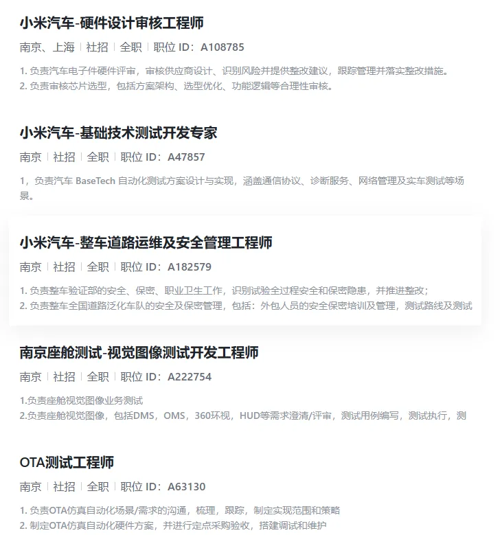 招聘岗位:车间管理、交付接待专员、公关总监、门店运营、主播、法务总监、新媒体制作、投放运营、影像编辑、人才培训、招聘运营、用户运营、JAVA技术专家、软件系统架构师、交互设计师、用户研究、钣金技师、业务培训、产品经理、项目运营、零售顾问、事故顾问、机电服务顾问、测试工程师、区域经理、软件开发工程师、研发费用管理专员、技术支持、智驾测试工程师、道路测试工程师、市场经理、数据分析师、汽车零部件设计师、算法工程师、安全事务专家、备件索赔、OTA测试工程师、驾驶安全专家...