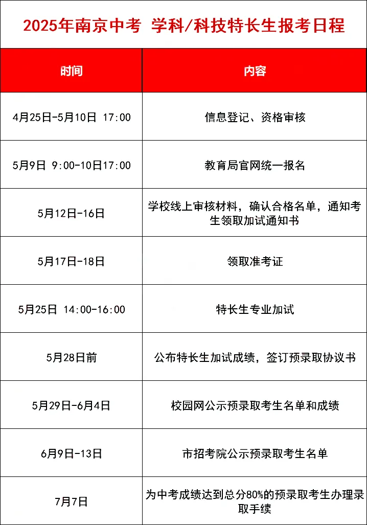 学科、科技特长生一般在四月份左右各校招生简章发布,5月初进行正式报名。