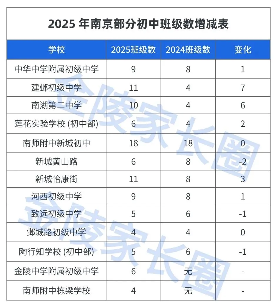 但请注意,这个“缩水”并不是全市普遍现象。2025年,南京大部分初中新生的班级数其实是在增加的,例如建邺初中增加了7个班,南湖二中、金中仙林等校也都有所扩招。