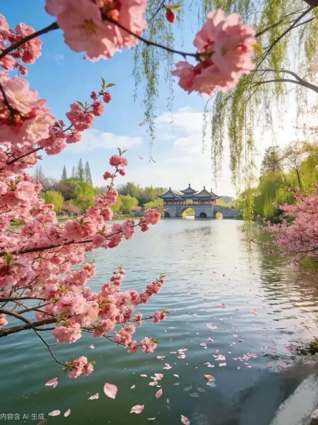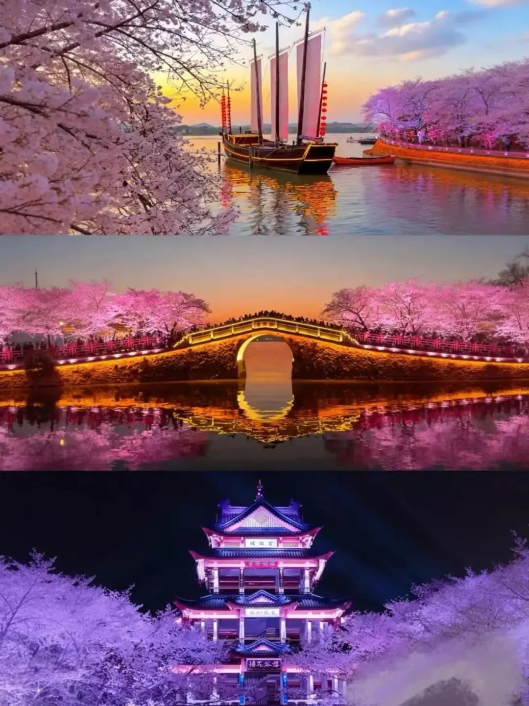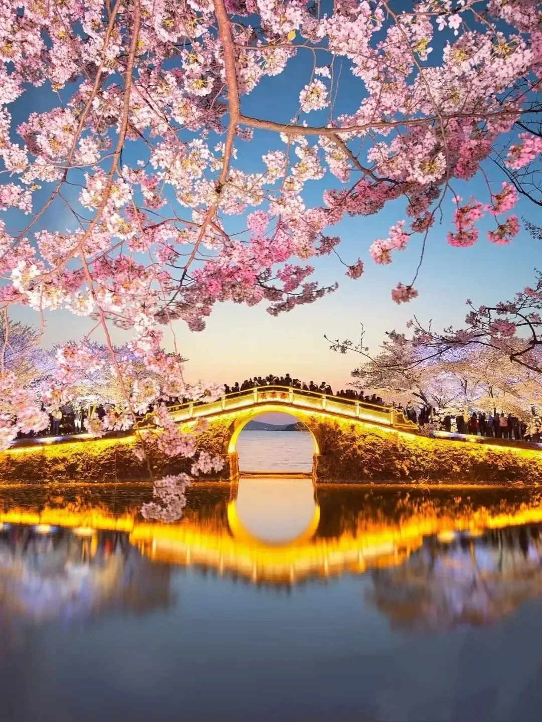 1.长春桥:樱花隧道、拱桥倒影、汉服拍摄、湖景与樱花同框