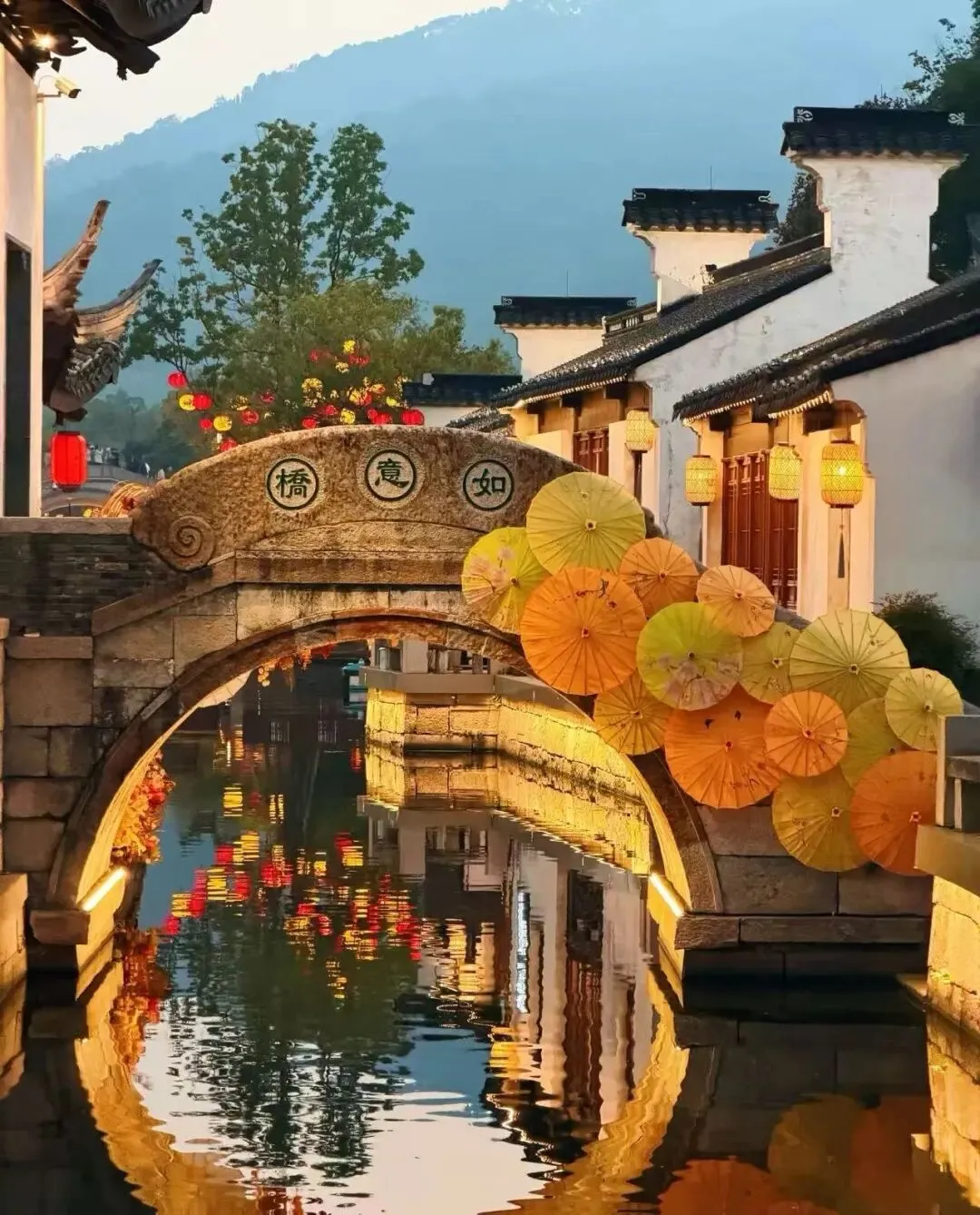 1.双桥夜景:灯光和河水交织成美丽画卷,让时光仿佛倒流回那个江南水乡的旧时光。
