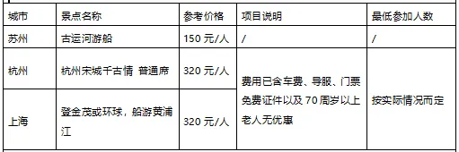 住宿:全程入住当地3晚网评3钻酒店升级一晚网评4钻体验一晚周庄外水乡精品客栈, 全程不提供自然单间,补房差400。