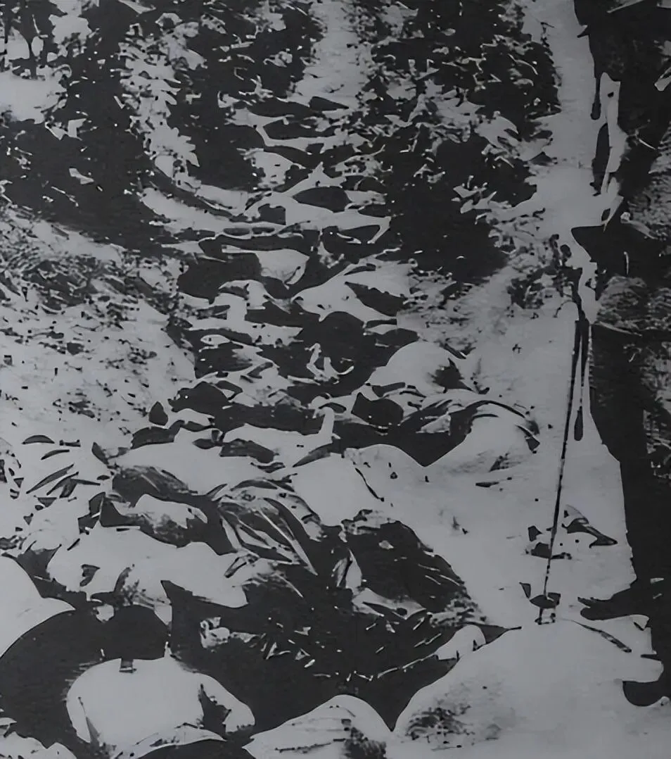 幕府山下有个叫草鞋峡的地方,日军在那里关押了数万人,不给吃不给喝,关了好几天之后,以"转移"为名把人押到江边。机枪先响,然后是刺刀,然后同样是火。一个叫唐广普的守军士兵,右肩中弹,靠着装死才活下来,他记得"死尸堆在我身上,感觉特别重"。