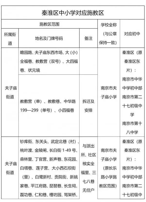 南京师范大学附属小学(部分地段):成贤街45-117(单)56-114号(双)、沙塘园、四牌楼(含61号新建酒店式公寓五层六层 )、文昌桥、蓁巷、进香河路33号(不含时代华府即 33 号2)、大石桥 2-28号(双)、15 号、17号、新安里9号