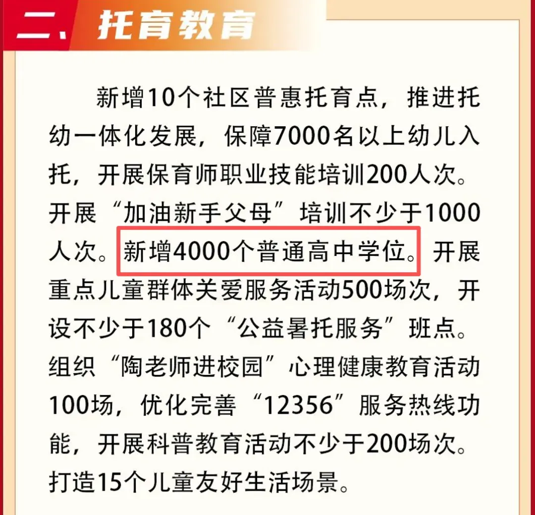 扩招带来的挤压不是线性的,而是层层传导的,附中多招100人,就会从“六大”边缘开始逐级向下推演,最终落到二批次、落到民办普高头上。今年有的民办高中,有自己小学和初中的都动起了贯通培养的模式,以此来留住本校生,也是一条求生路径。根据此前南京发布的10类民生实事中提及,今年将新增4000个普高学位。
