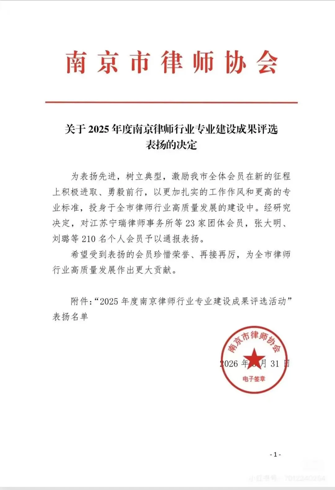 喜报|汪世龙律师获评南京市律师协会“刑事法律专业律师”