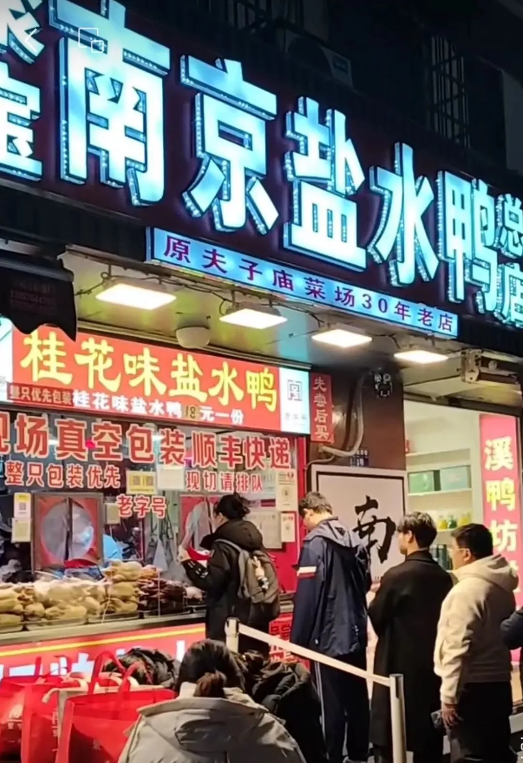 附近的居民不想做菜了,直接去楼下斩个鸭子,方便又美味。因为靠近夫子庙,不光是本地人,还吸引很多外地的游客前来购买。