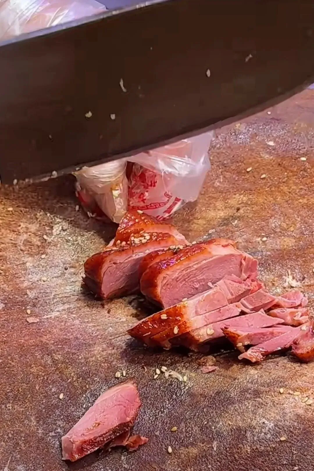 这是一家传承了两代人的店,遵循着南京板鸭传统制作工艺,肉质紧实,酱香浓郁,还带着丝丝芝麻香。
