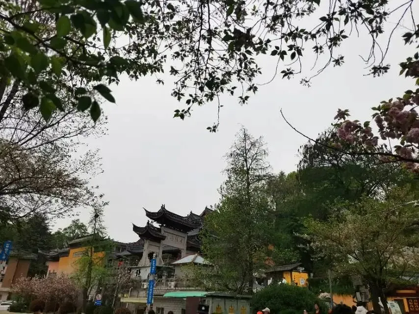 怕爬山太累,那就去鸡鸣寺看花吧,四月的鸡鸣寺肯定繁花似锦,美如仙境,我甚至幻想着花瓣落满全身的美好意境。可过来现场一看,人比花多,仅剩几株樱花还有些许花瓣,其他已经凋落殆尽。尽管小长假已接近尾声,门口还有很多人排队等待,那我就随大流看看。