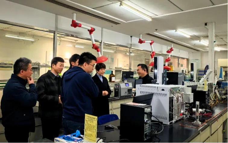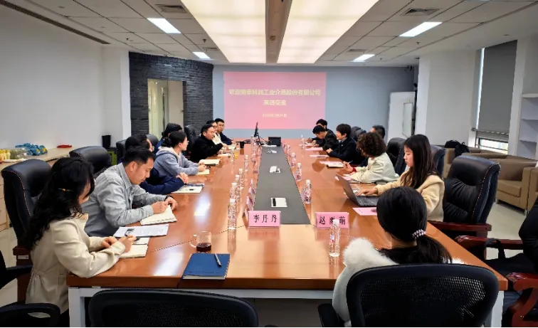 自2025年起,先进润滑实验室与科润工业介质公司合作承担国家级科研项目,致力于在环保节能型高性能工业润滑介质体系设计技术领域实现突破。本次交流中,先进润滑材料实验室重点介绍了其近年来在润滑添加剂方面的研究成果,以及面向行业实际需求构建的润滑剂摩擦检测方法体系。科润工业介质公司则分享了在难加工材料润滑评价方法上的探索进展,以及金属加工油性产品添加剂合成及分析方法的开发情况。报告结束后,双方围绕加工油中基础油和添加剂的适配性、不同摩擦副材料和润滑剂的配伍性、润滑评价方法与工况的相关性等方面进行了深入的交流。最后,双方领导和技术骨干共同参观了先进润滑材料实验室。